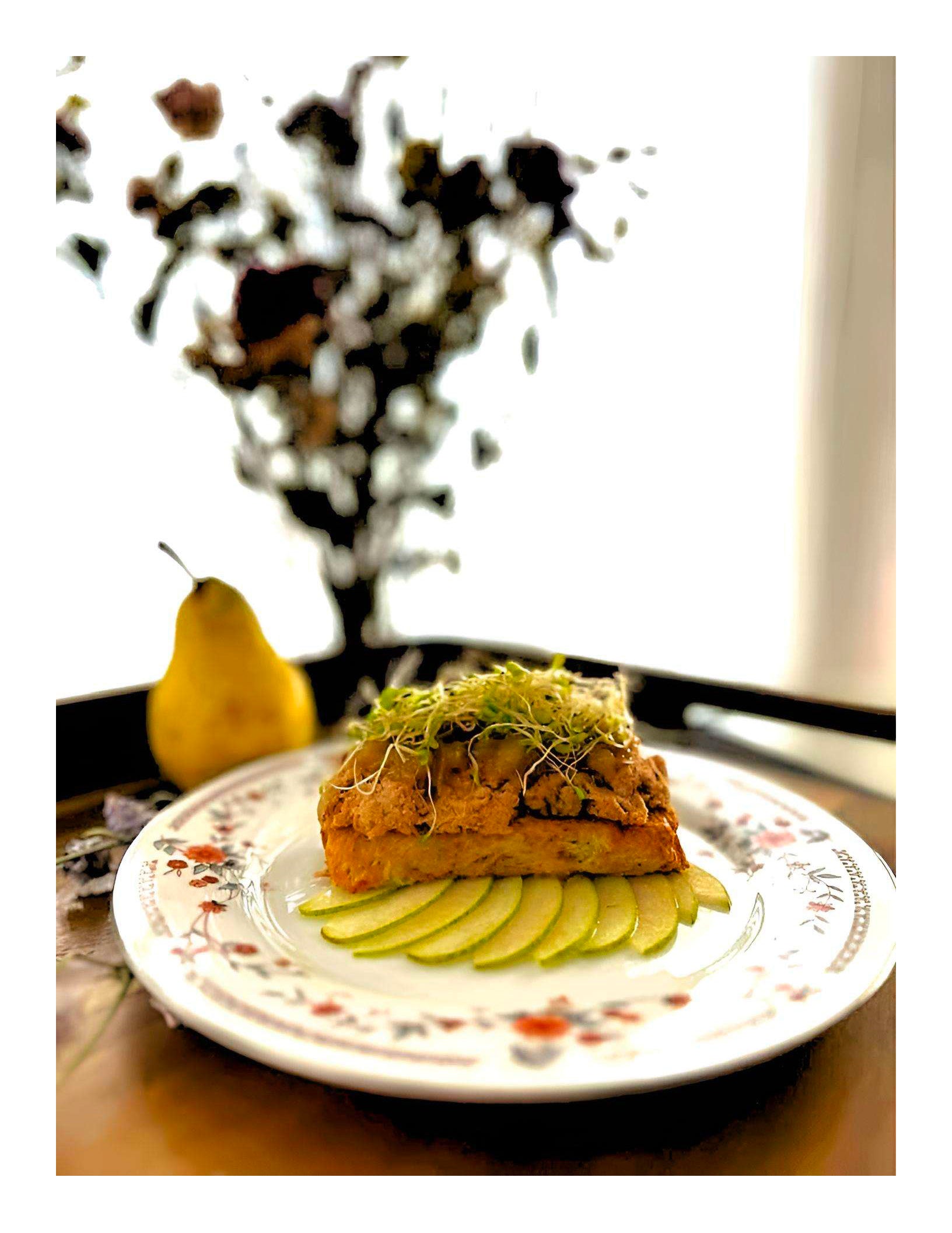 - Rillettes de lapin et gelée de miel Glühwein sur un morceau de pain au levain, nappés d'un filet de notre miel brut bio d'automne (manié pour l'assouplir) et toppés d'un zeste d'orange confite
